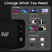 RVP+ 100W USB C Charger GaN(3rd Generation) PD3.0 Tech Power Adapter 2-Port Foldable Wall Charger