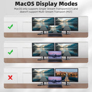 • For MacOS and iPadOS users, please be aware that they only support Single-Stream Transport (SST) mode, meaning that all connected monitors will display the same content.