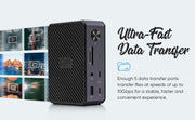 • With dual 10Gbps USB-C and three USB 3.0 ports, experience lightning-fast data transfer. Transfer a 20GB file in just 26 seconds when using the USB-C port.