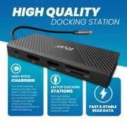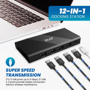 RVP+ Docking Station 3 Monitors, 12-in-1, Tri-Display-4K HDMI Dual Monitors, 5Gbps USB-C-A Data Transfer, USB 3.0, 100W Laptop-Charging, Gigabit Ethernet, Audio, SD-TF Dongle (RVP-MCY93)