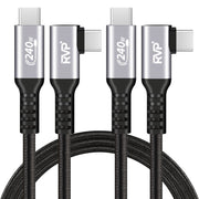 RVP+ USB C Cable 90 Degree (2Pack, 240W), Type C to Type C Cable, PD 3.1 Fast Charging Cable Up Down Angle - Grey